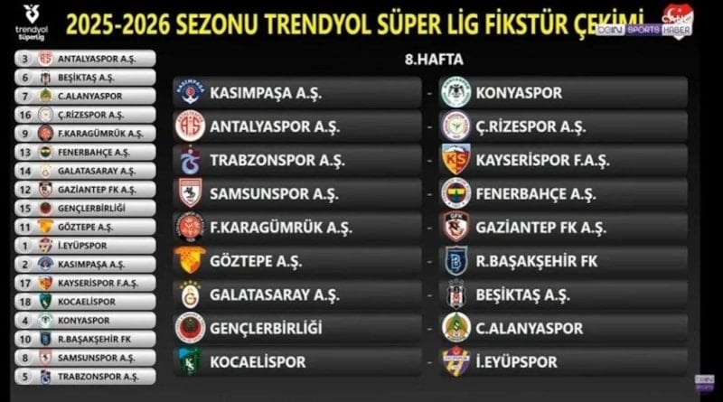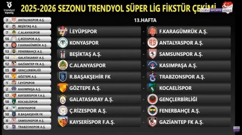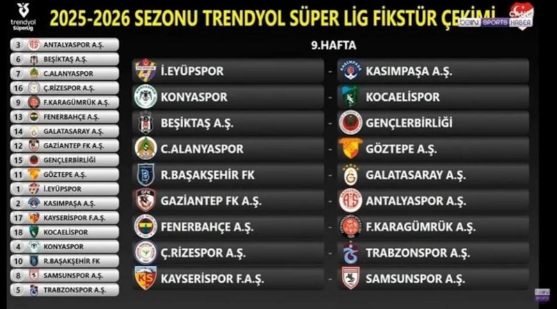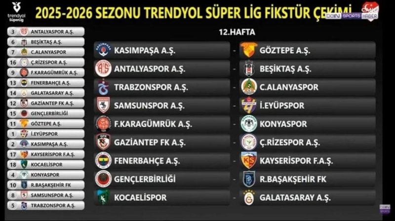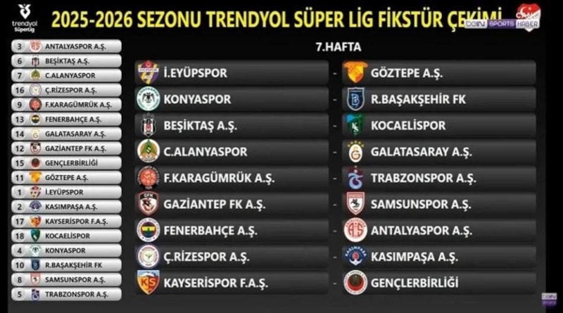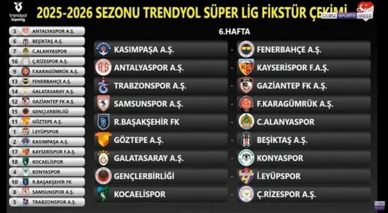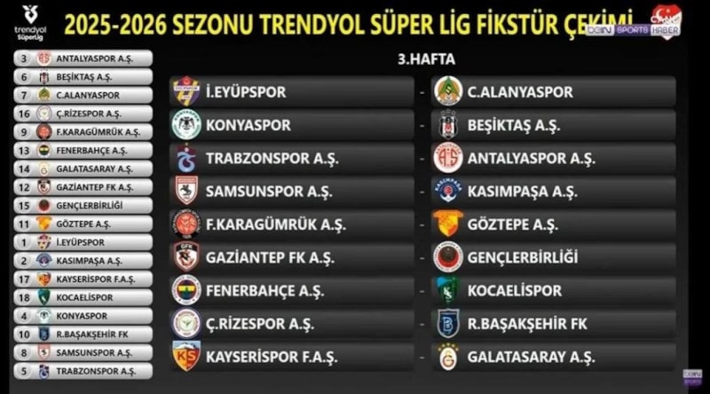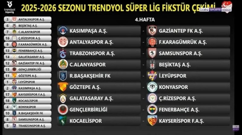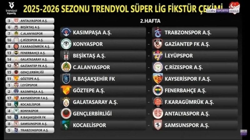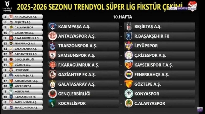 Süper Lig'de 2025-2026 sezonu fikstürü çekimi yapıldı. Sezonun ilk derbisi 5. haftada Fenerbahçe ile Trabzonspor arasında oynanacak.