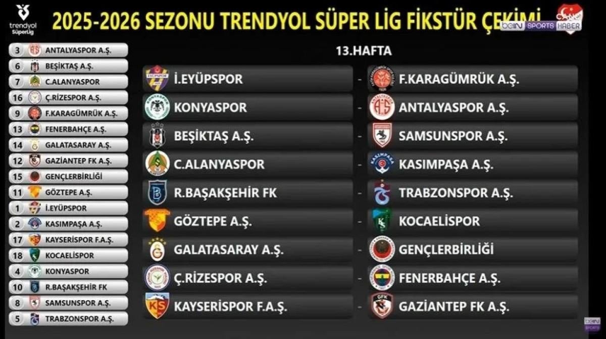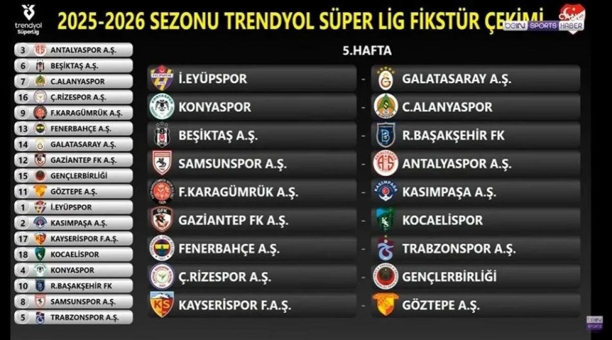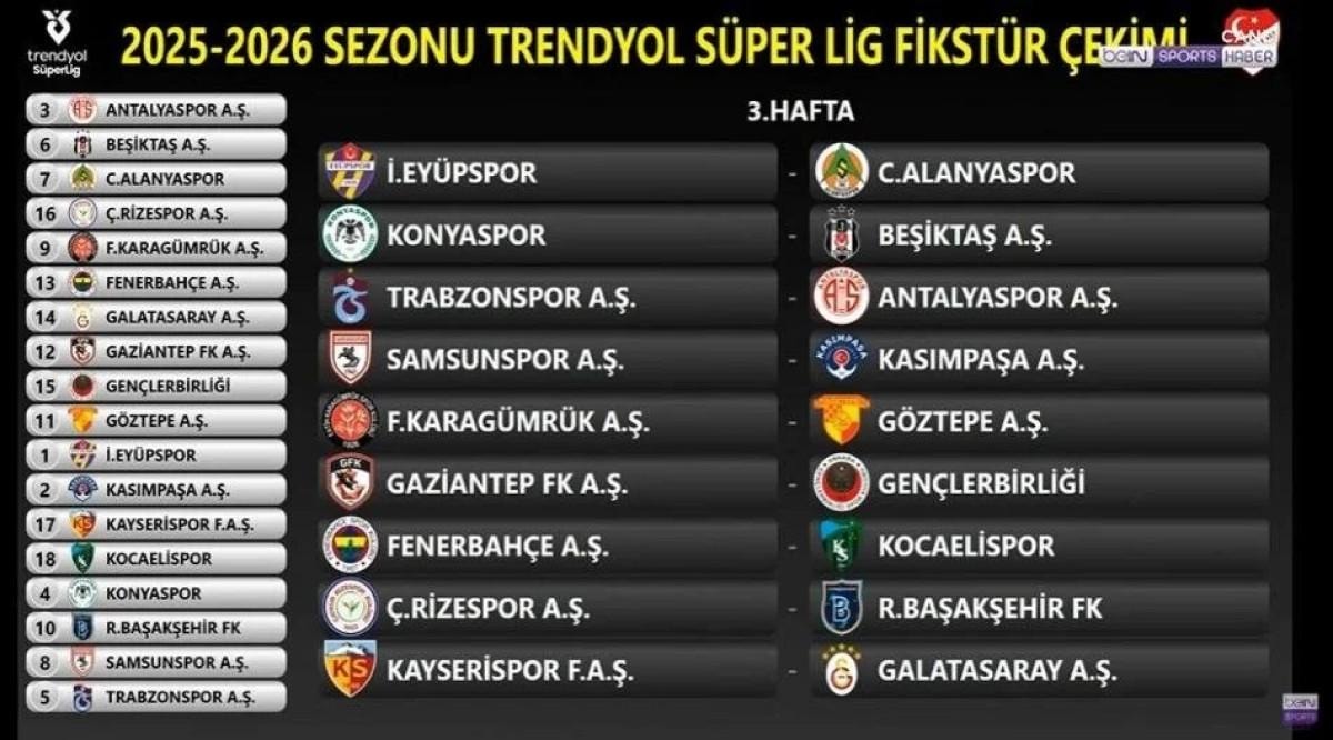Süper Lig'de 2025-2026 sezonu fikstür çekimi, Türkiye Futbol Federasyonu (TFF) Riva Hasan Doğan Milli Takımlar Kamp ve Eğitim Tesisleri'nde gerçekleştirildi.