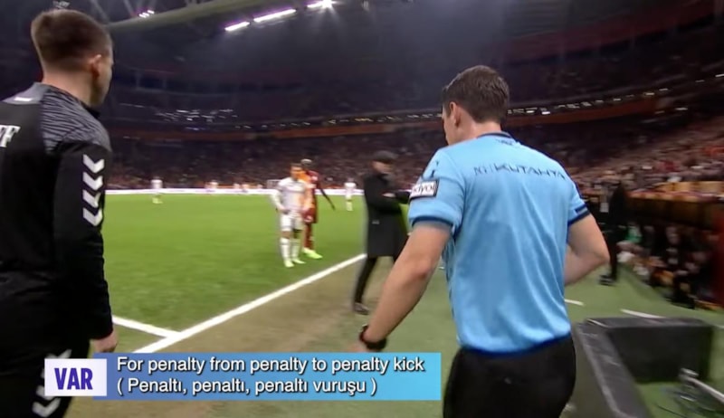 VAR: Umut, sana sahada bir inceleme öneriyorum penaltı pozisyonu için. Sana bir kameradan temas noktasını gösteriyorum. Şimdi aksiyonu göreceksin.