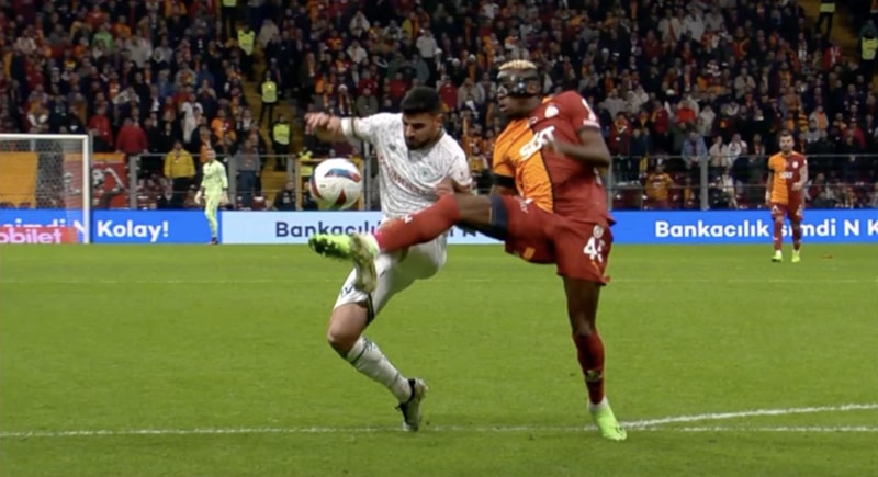 - Galatasaray - Konyaspor maçının 18. dakikasında Osimhen ceza sahası içinde yerde kalırken, hakem Halil Umut Meler’e VAR’dan uyarı yapıldı. Kenara gelerek pozisyonu izleyen Meler, Adil’in Osimhen’e müdahalesini belirleyerek ev sahibi lehine penaltı noktasını gösterdi.