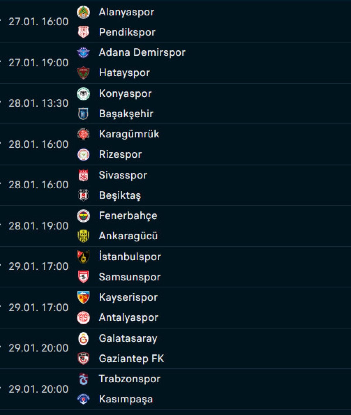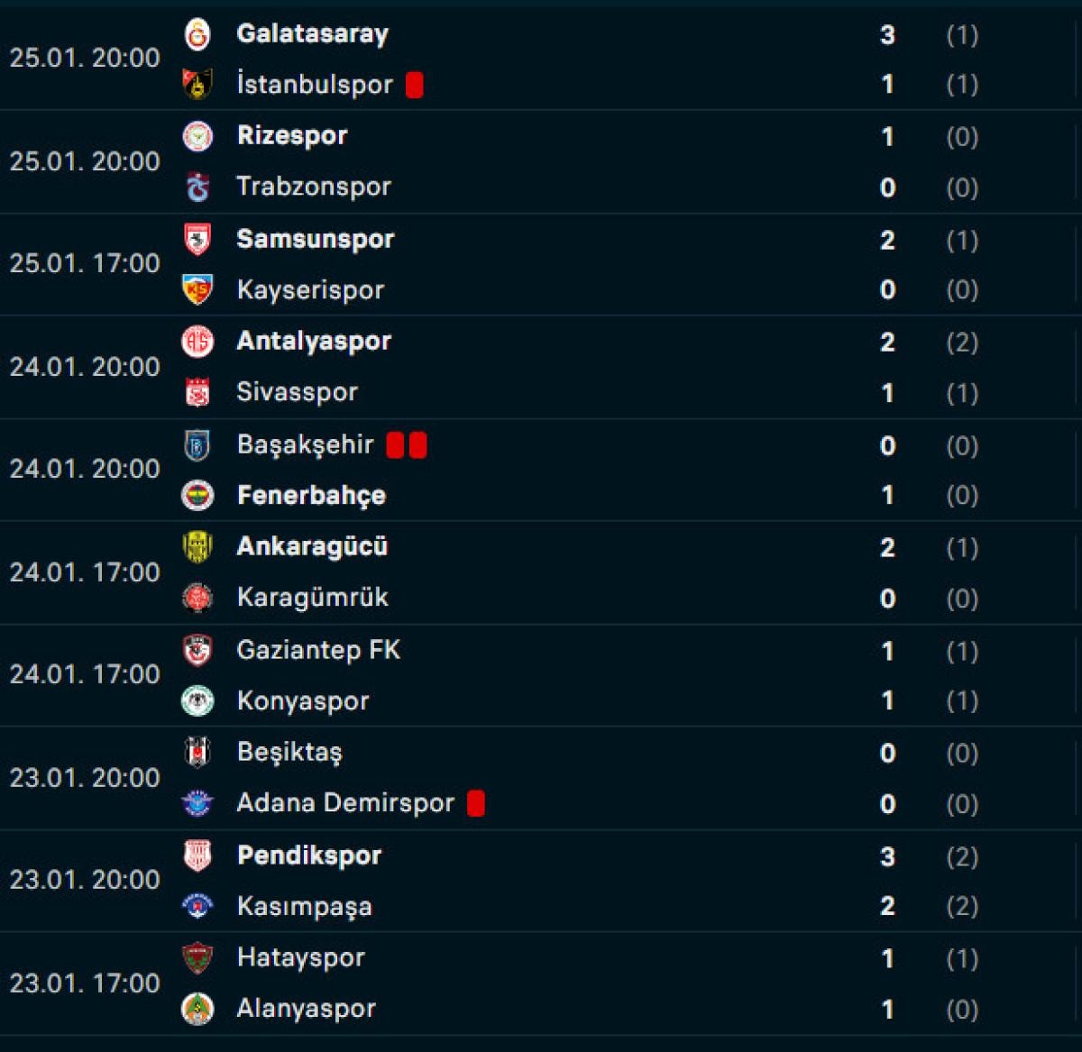 Haftanın kapanış gününde Galatasaray İstanbulspor'u 3-1, Rizespor Trabzonspor'u 1-0 ve Samsunspor da Kayserispor'u 2-0 mağlup etti.