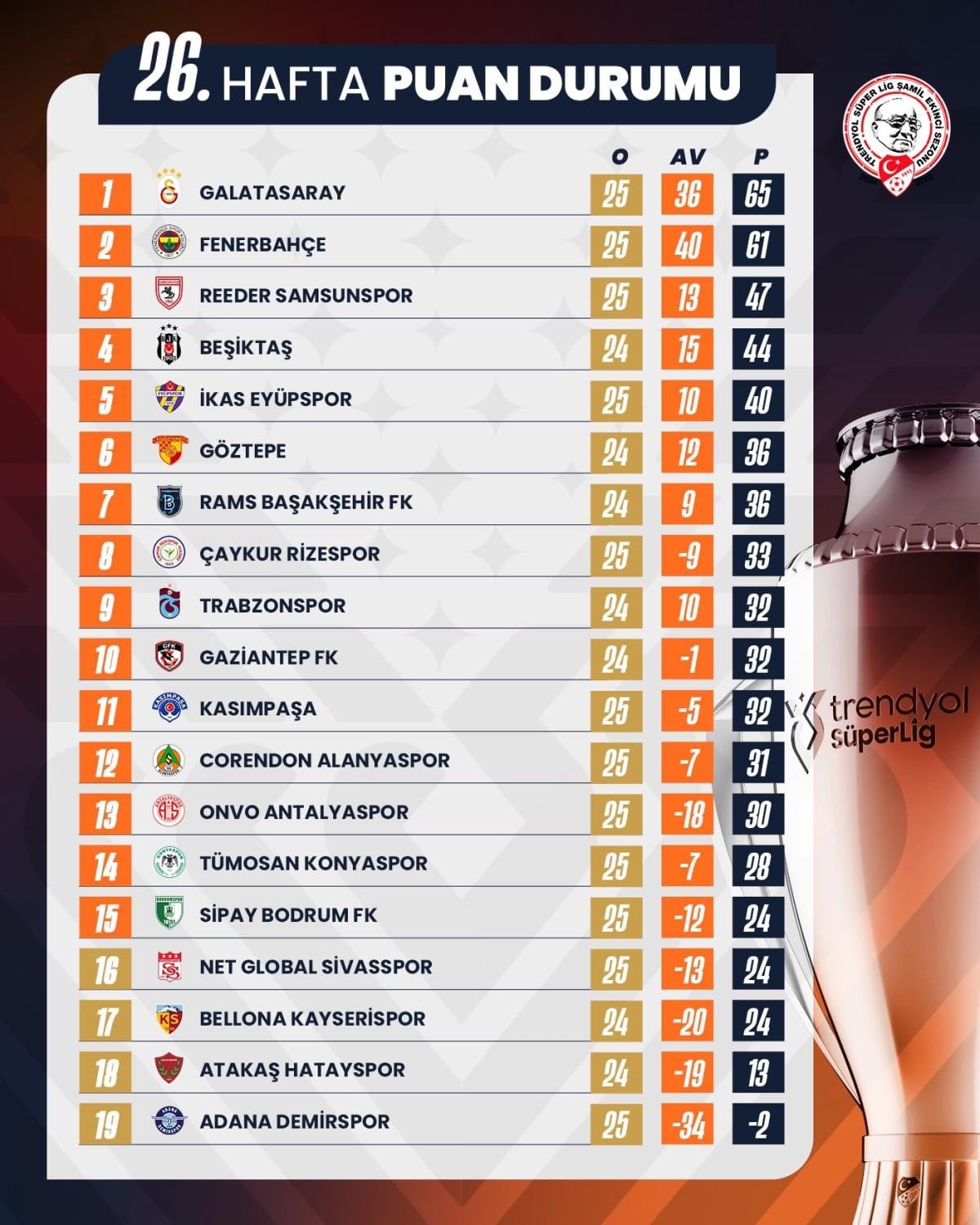 26. haftanın sonuçları: