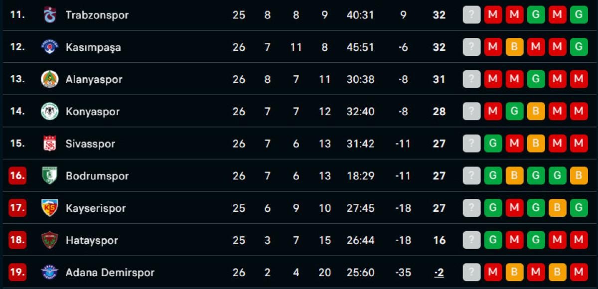 Süper Lig'de 27. hafta sona erdi.
