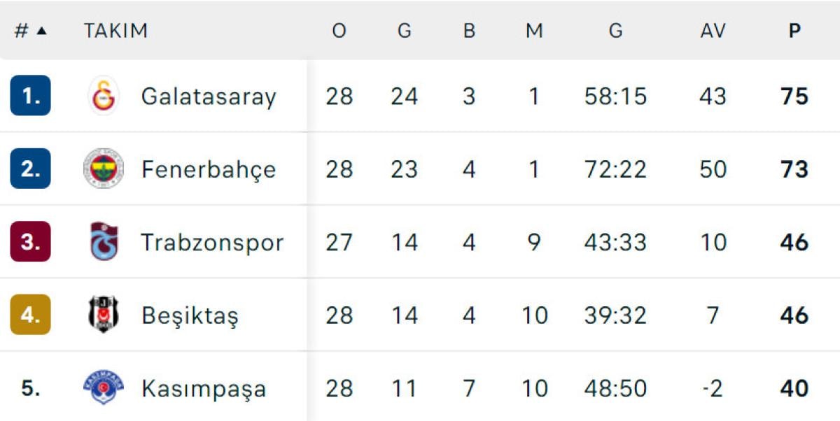 Bu sonuçlarla puan durumu değişmezken Galatasaray, Fenerbahçe'nin önünde liderliğini sürdürdü.