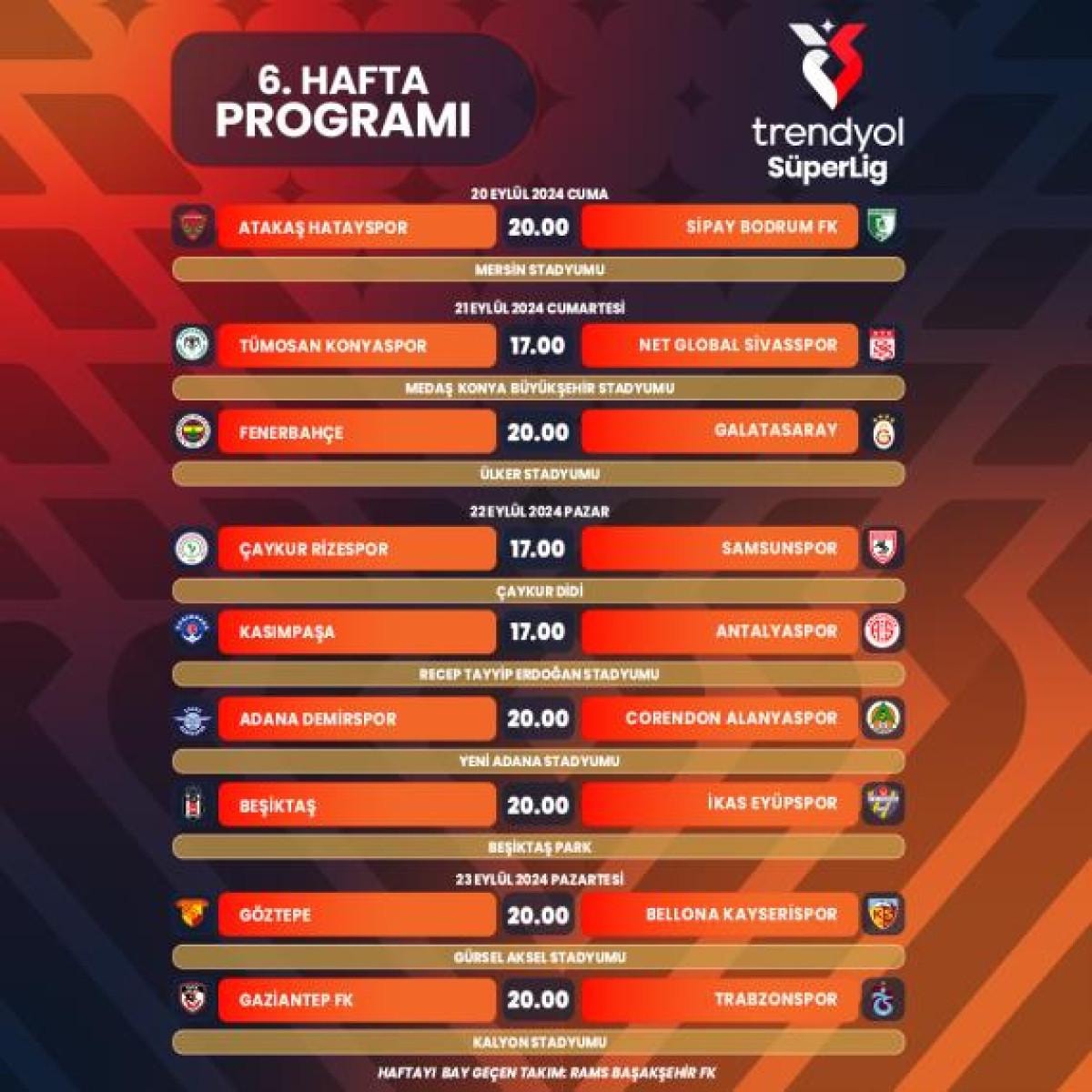 Buna göre 6. haftadaki Fenerbahçe - Galatasaray derbisi 21 Eylül Cumartesi günü 20.00'de oynanacak.