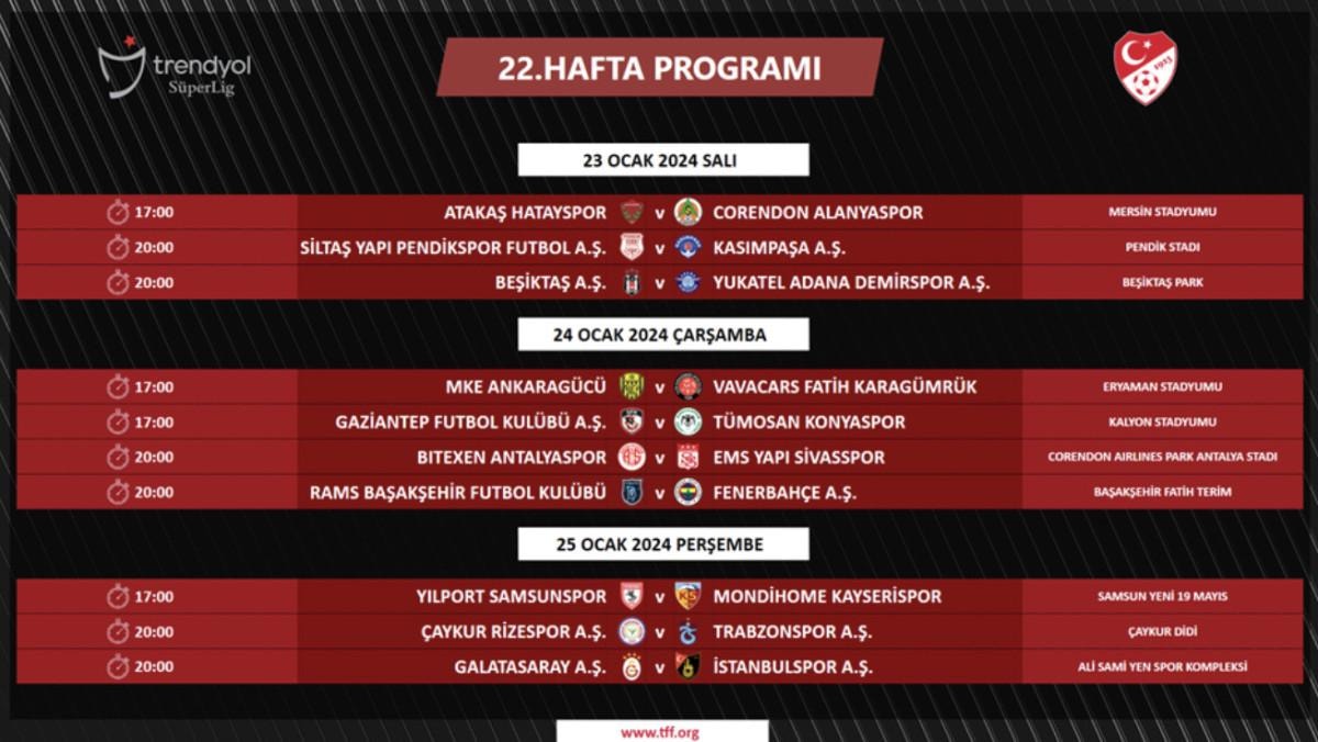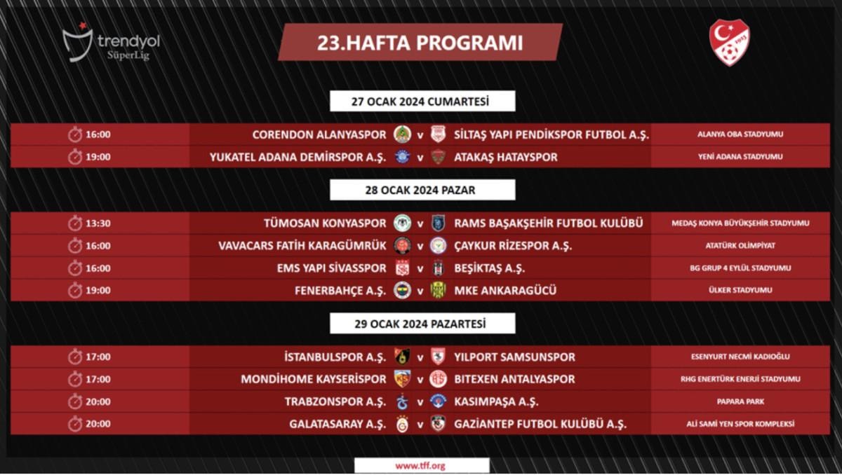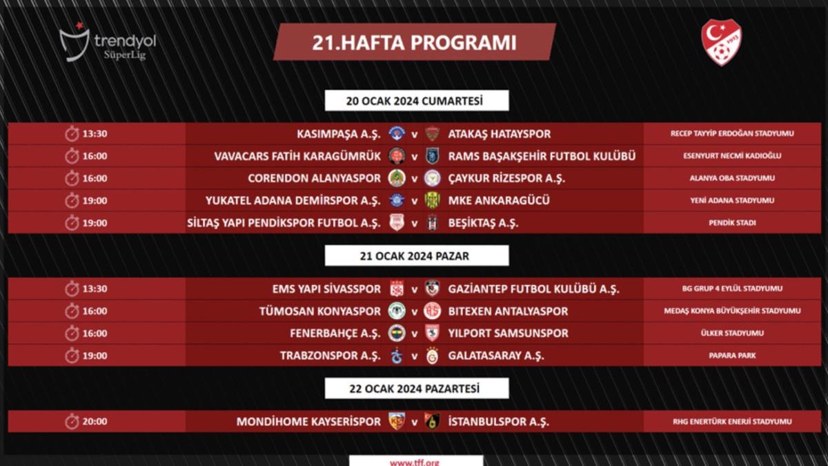 Süper Lig'de 21, 22 ve 23. hafta müsabakalarına ilişkin programlar belli oldu.