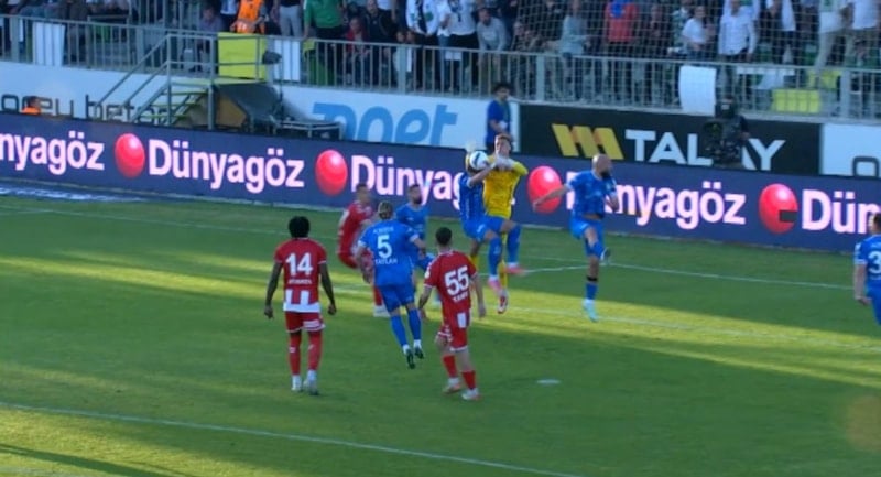 VAR monitörüne giden Şansalan, sol kanattan yapılan orta sonrası ceza sahasında Edin Visca’nın topa elle temasını izledi.