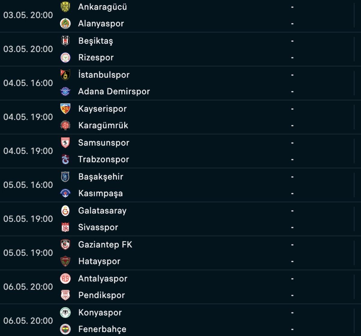 34. haftanın sonuçları:
