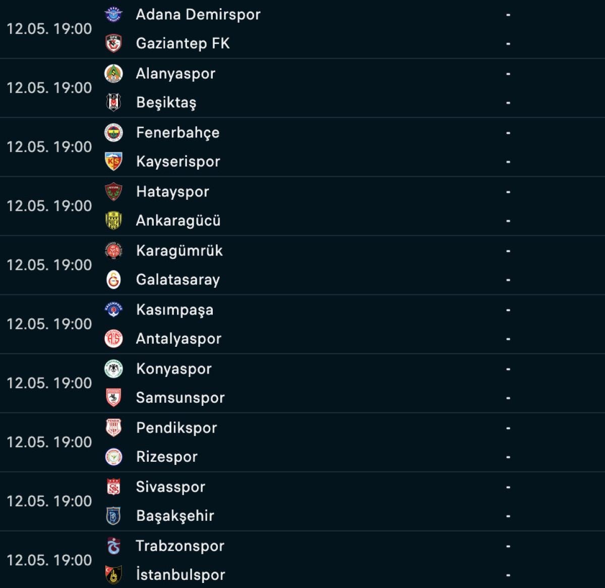 33 puanlı Pendikspor 19'uncu, 34 puanlı Hatayspor 18'inci, 35 puanlı Gaziantep FK ise 17'inci yer alıyor.