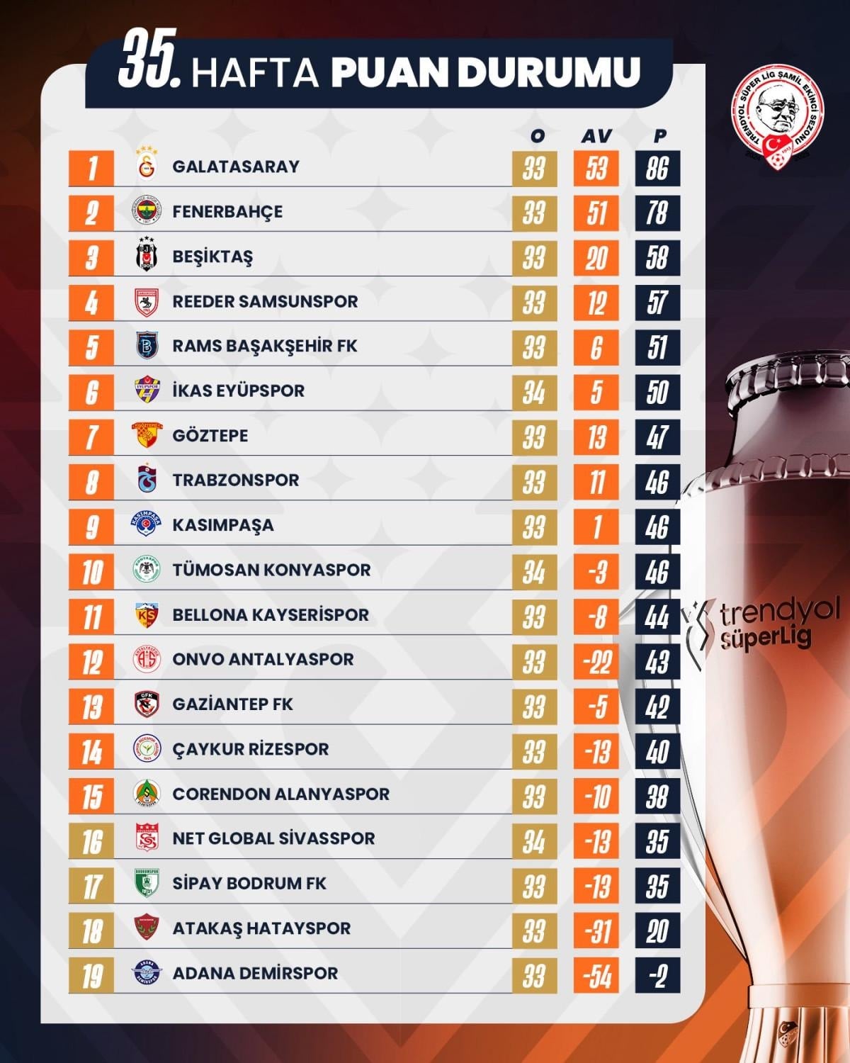 Süper Lig'de 35. hafta sona erdi.