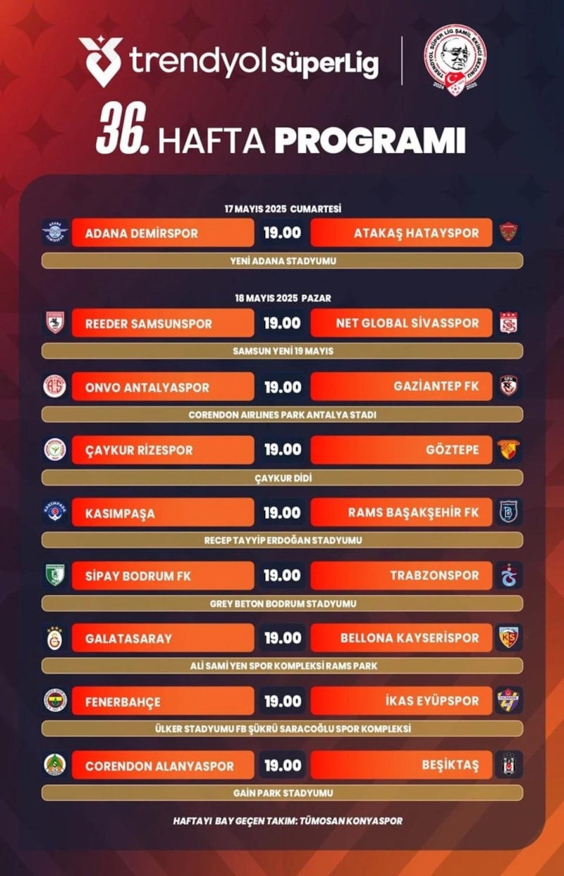 Türkiye Futbol Federasyonu, Süper Lig'in 36. haftanın maç programını duyurdu.
