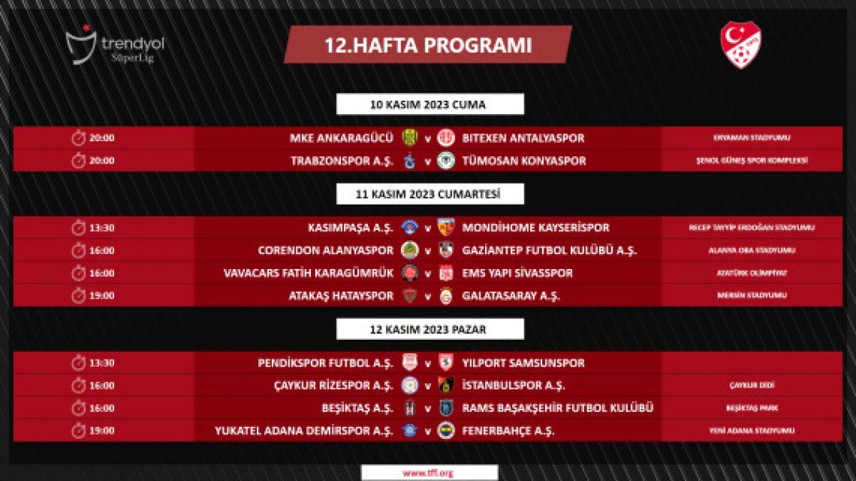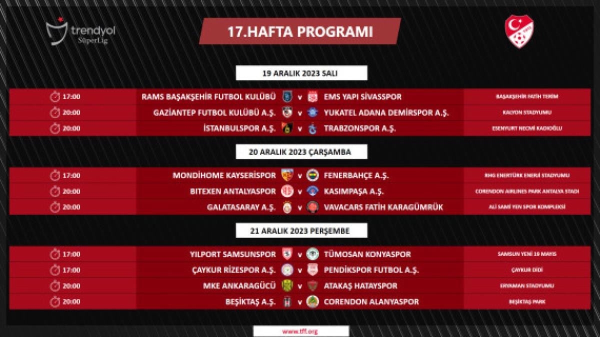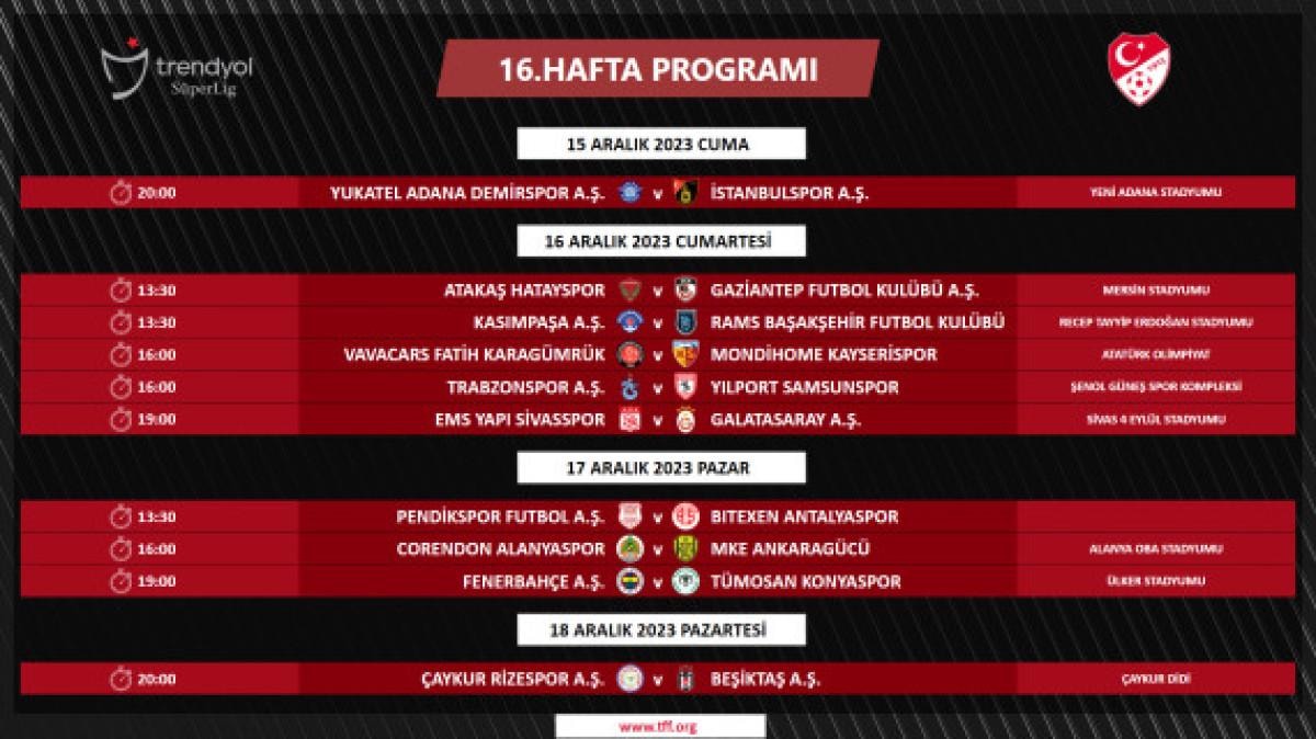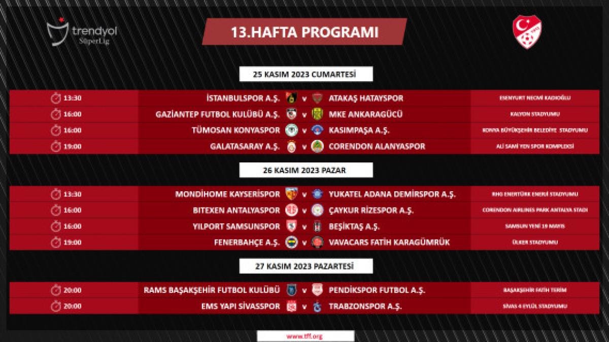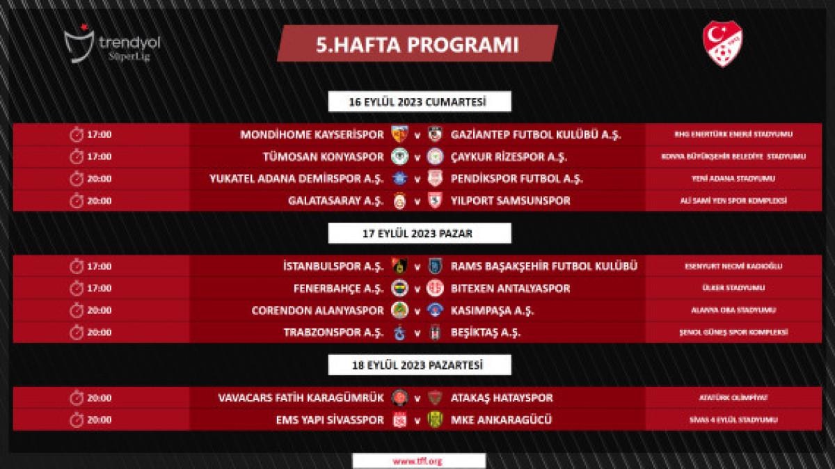 Süper Lig’de 5-18. haftalarda oynanacak müsabakaların programı şu şekilde: