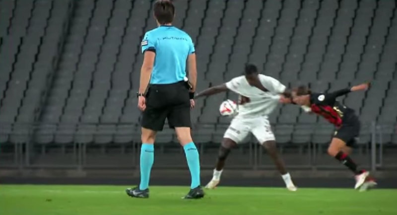 - VAR: Penaltı sırasında hücum oyuncusunun elle oynamasını göstereceğim.