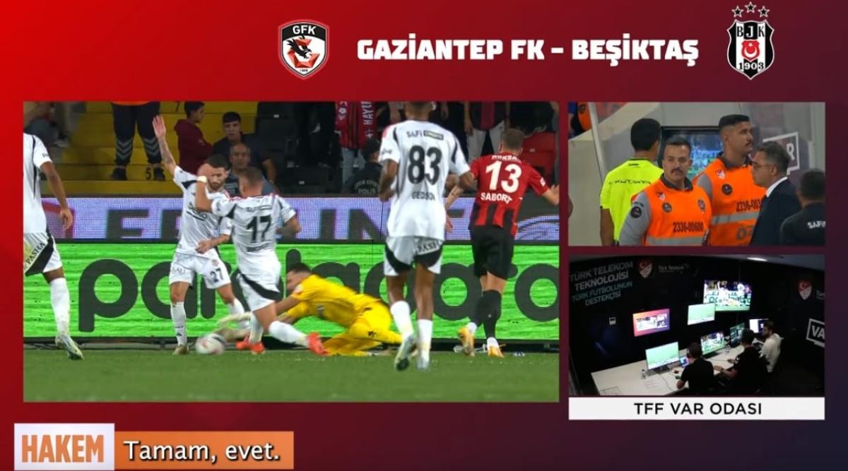- Gaziantep FK - Beşiktaş mücadelesinin 26. dakikasında, konuk ekibin atağında Immobile ceza sahası içerisinde yerde kaldı. Hakem Muhammet Ali Metoğlu, potansiyel penaltı için kenara geldi. VAR'ın tavsiyesi üzerine kalecinin teması olduğunu belirledi ve sahaya dönerek penaltı kararı verdi.