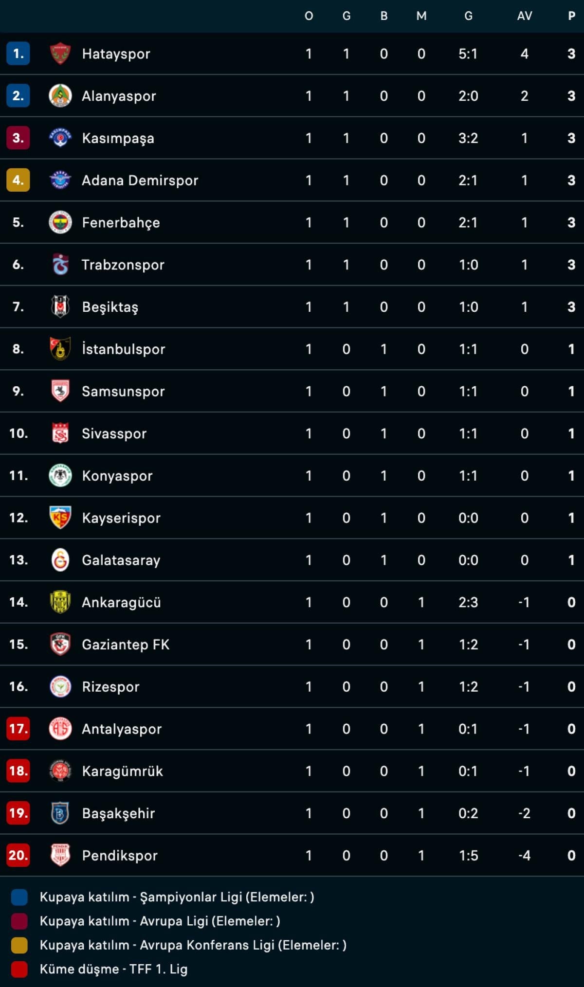 Süper Lig'de 2023-2024 sezonunun ilk haftası pazartesi akşamı oynanan 2 karşılaşmayla sona erdi.