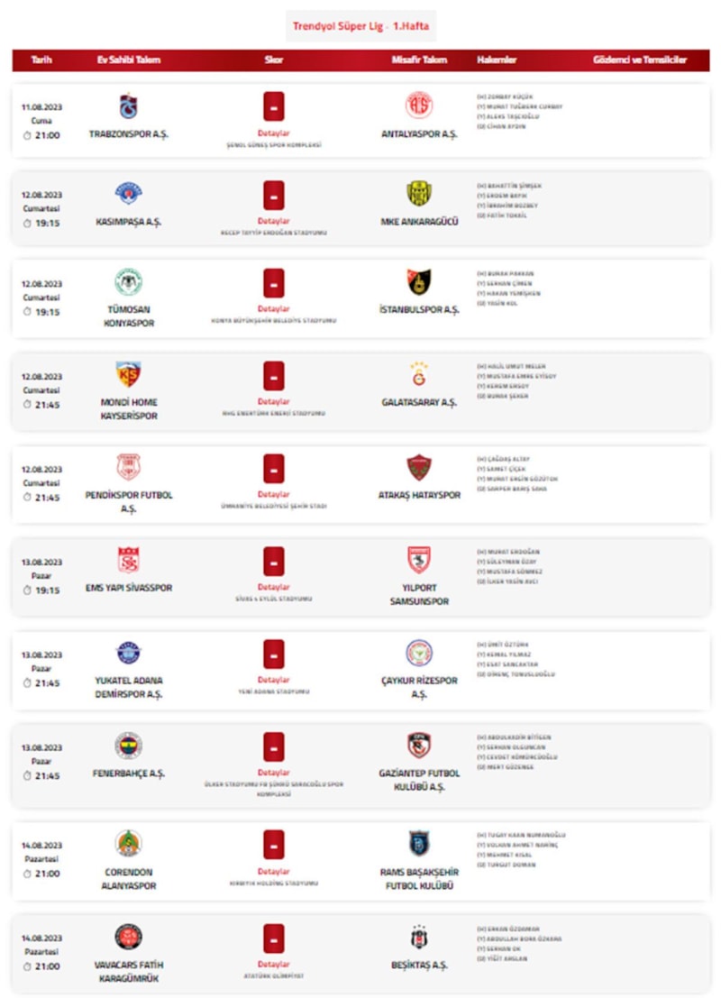 Türkiye Futbol Federasyonu, resmi hesabından yaptığı paylaşımla 1. haftada maç yönetecek hakemleri açıkladı.