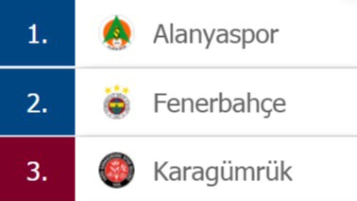 Türk Telekom Stadı'nda 90+5. dakikada attığı golle Galatasaray'ı 2-1 mağlup eden Alanyaspor liderliğini korurken, 11 puanlı Fenerbahçe 2. sırada yer aldı.