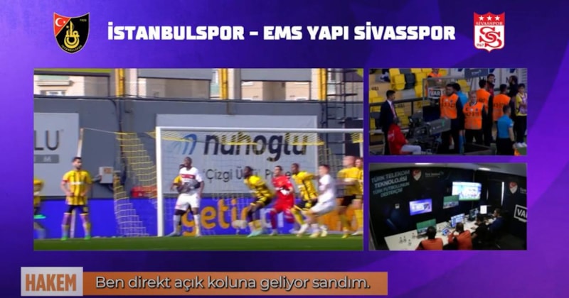 İstanbulspor - Sivasspor müsabakasının 64. dakikasında köşe vuruşu sonrası hakem Ömer Faruk Turtay, elle oynama belirleyerek penaltı noktasını gösterdi.