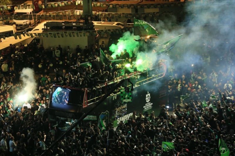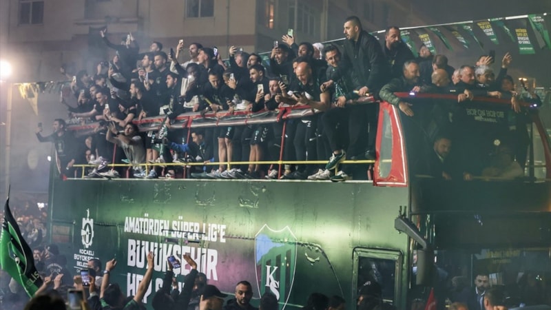 Kocaelispor'da futbolcular ve teknik heyet, takımlarının şampiyon olarak Süper Lig'e yükselmesini taraftarlarla kutladı.