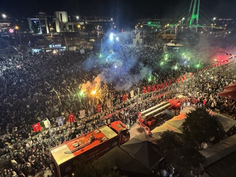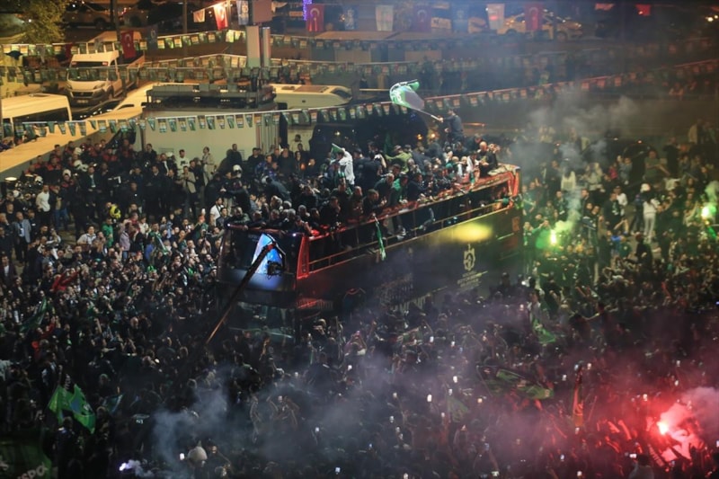 İstanbul'da Esenler Erokspor ile oynanan maçın ardından Kocaeli'ne gelen yeşil-siyahlı futbolcular ve teknik ekip, İzmit Kent Meydanı'nda taraftarıyla buluştu.