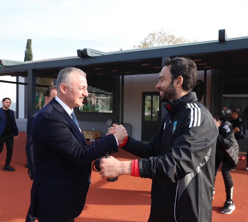 Yeşil-siyahlı ekibin antrenmanını ziyaret eden Büyükakın, takıma başarı dileklerinde bulunarak teknik heyet ve futbolculara baklava ikram etti.