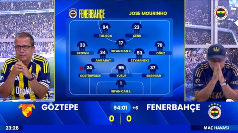 Süper Lig'in 2. haftasında Fenerbahçe, deplasmanda karşılaştığı Göztepe ile 0-0 berabere kalırken sarı lacivertli ekipte Talisca’nın son dakikada kaçırdığı penaltı, FB TV stüdyosunda büyük hayal kırıklığına yol açtı.