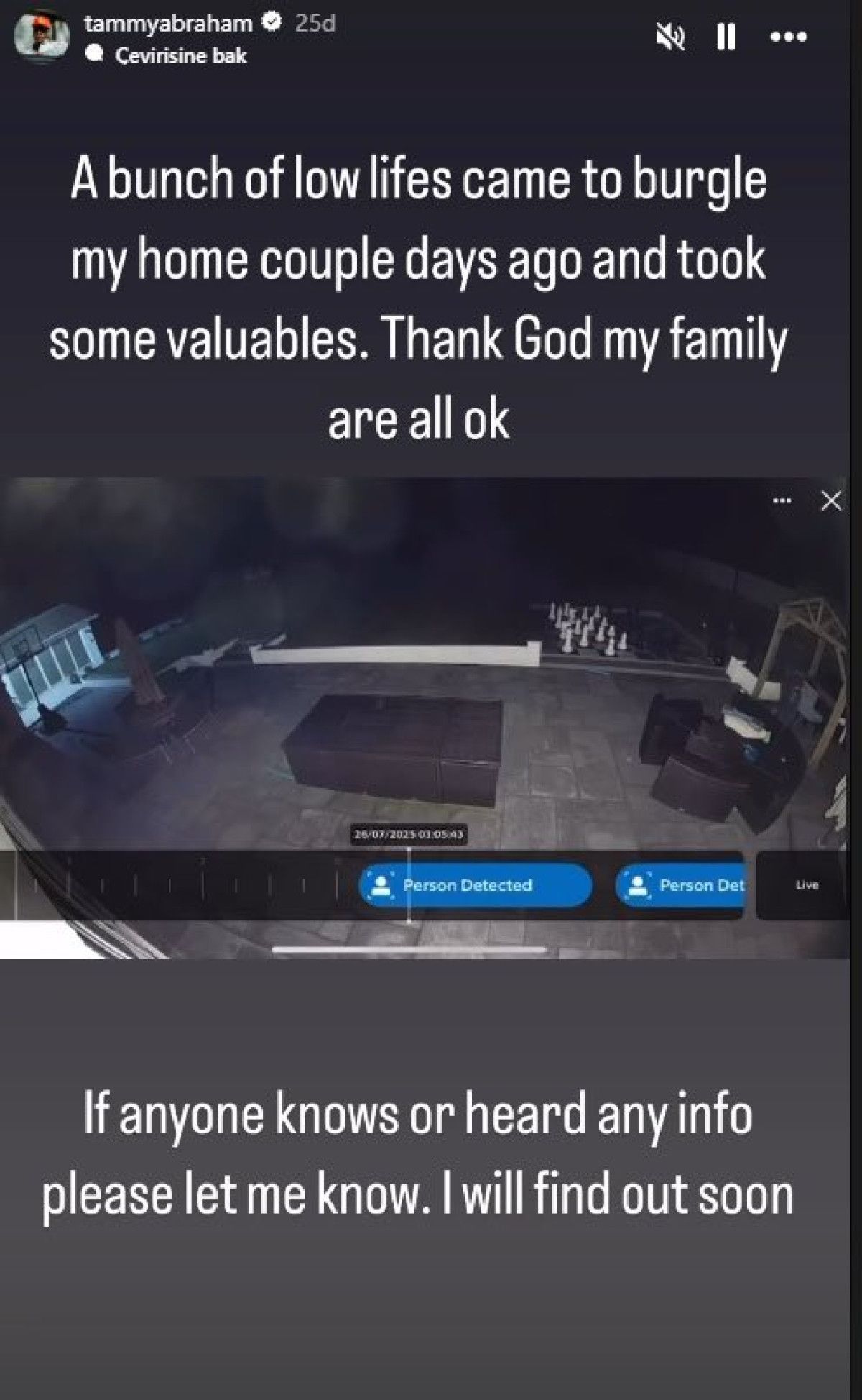 Londra'daki evinde bazı değerli eşyalarının çalındığını söyleyen Abraham, ailesinin iyi olduğunu belirtti.