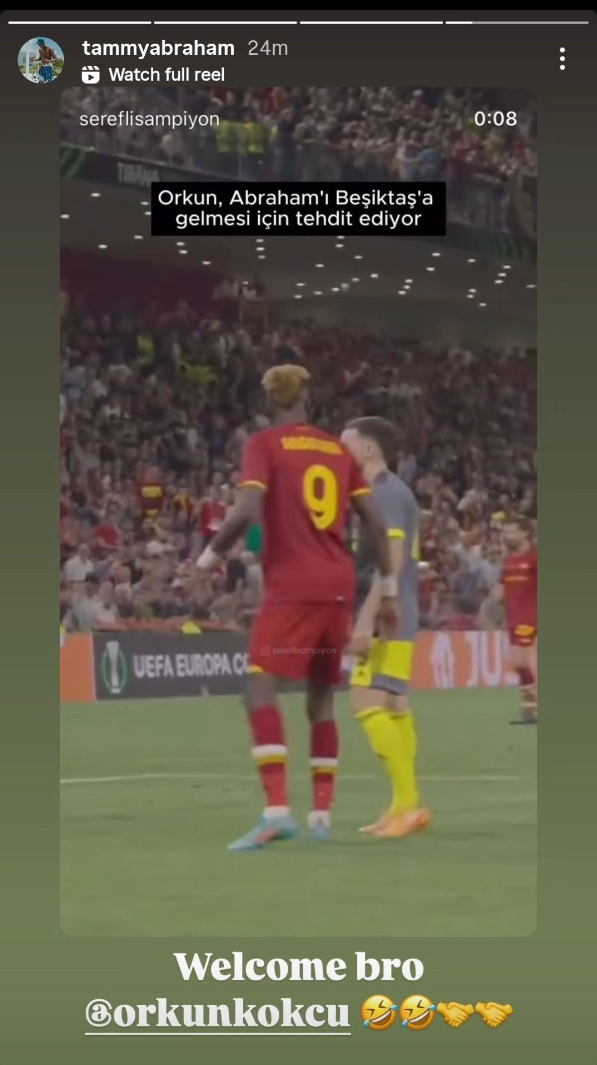 Kökçü'nün transferi sonrası ise Tammy Abraham'dan bir hoş geldin paylaşımı geldi.