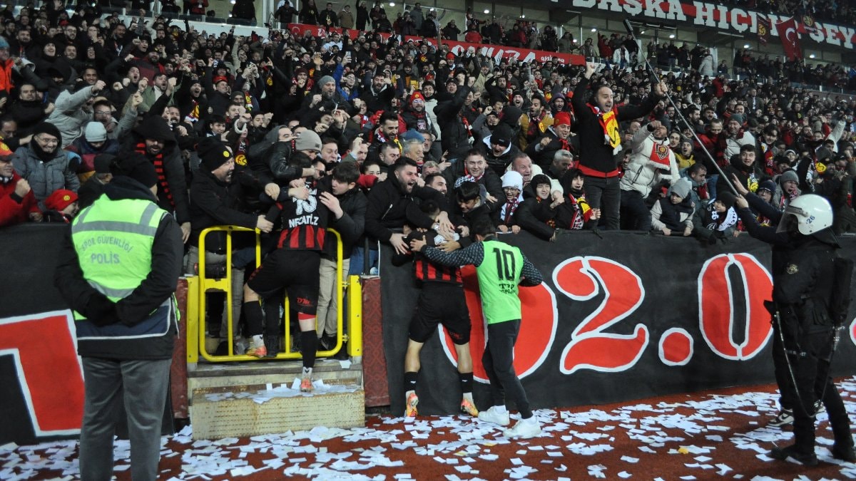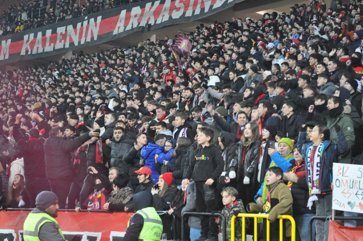 Siyah-kırmızı formaları ve atkıları ile tribünlerde görsel şovlar yapan coşkulu taraftar, maç boyunca hep bir ağızdan tezahüratlar yaparak takıma destek verdi.