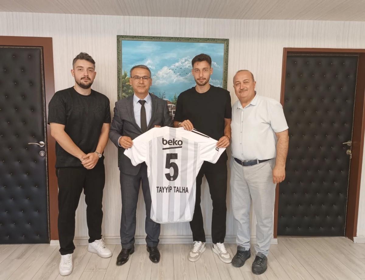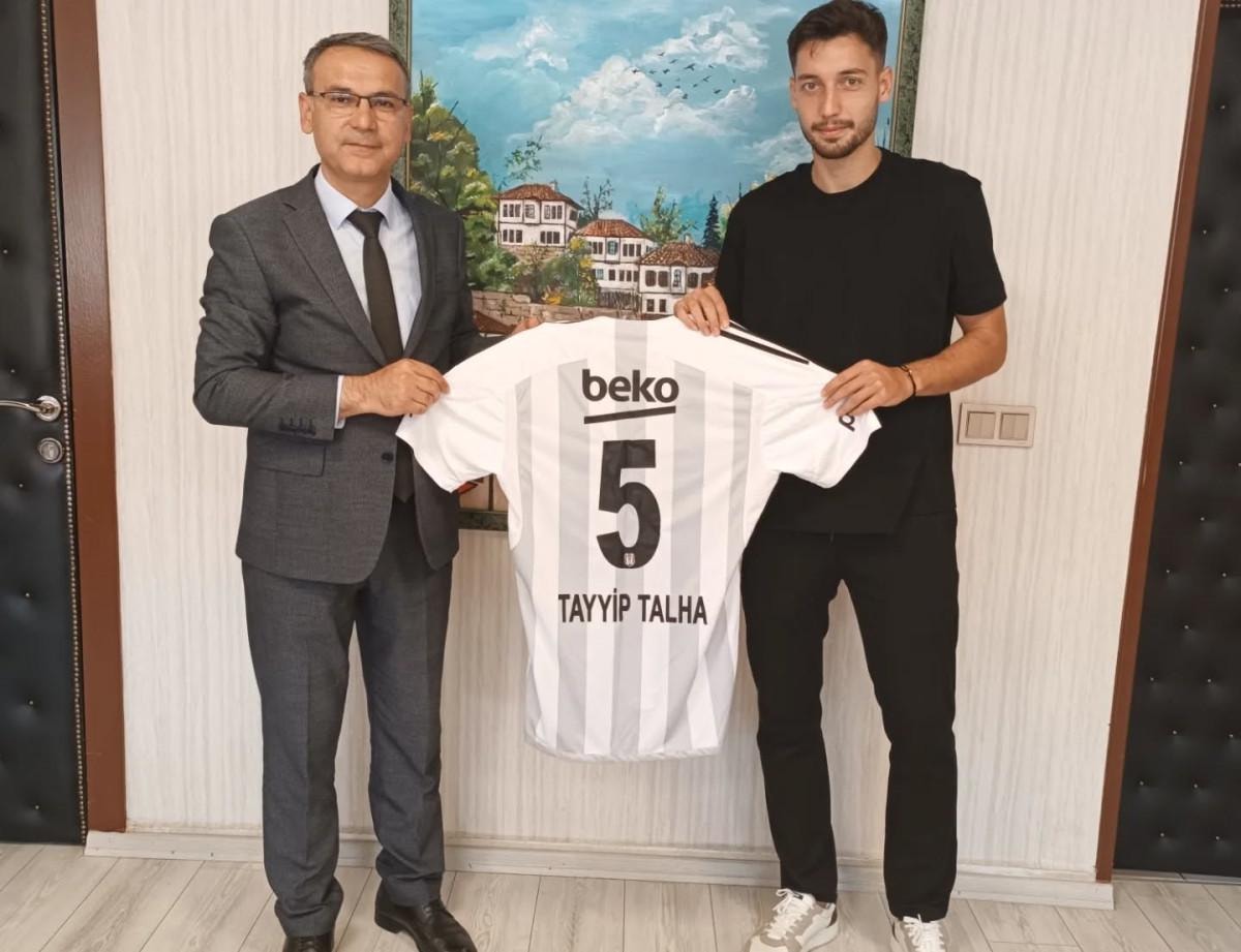 Süper Lig ekiplerinden Beşiktaş'ın başarılı stoperi Tayyip Talha Sanuç, tatil için geldiği memleketi Karabük'te Safranbolu İlçe Milli Eğitim Müdürü Şevket Küçükzoroğlu'nu ziyaret etti.