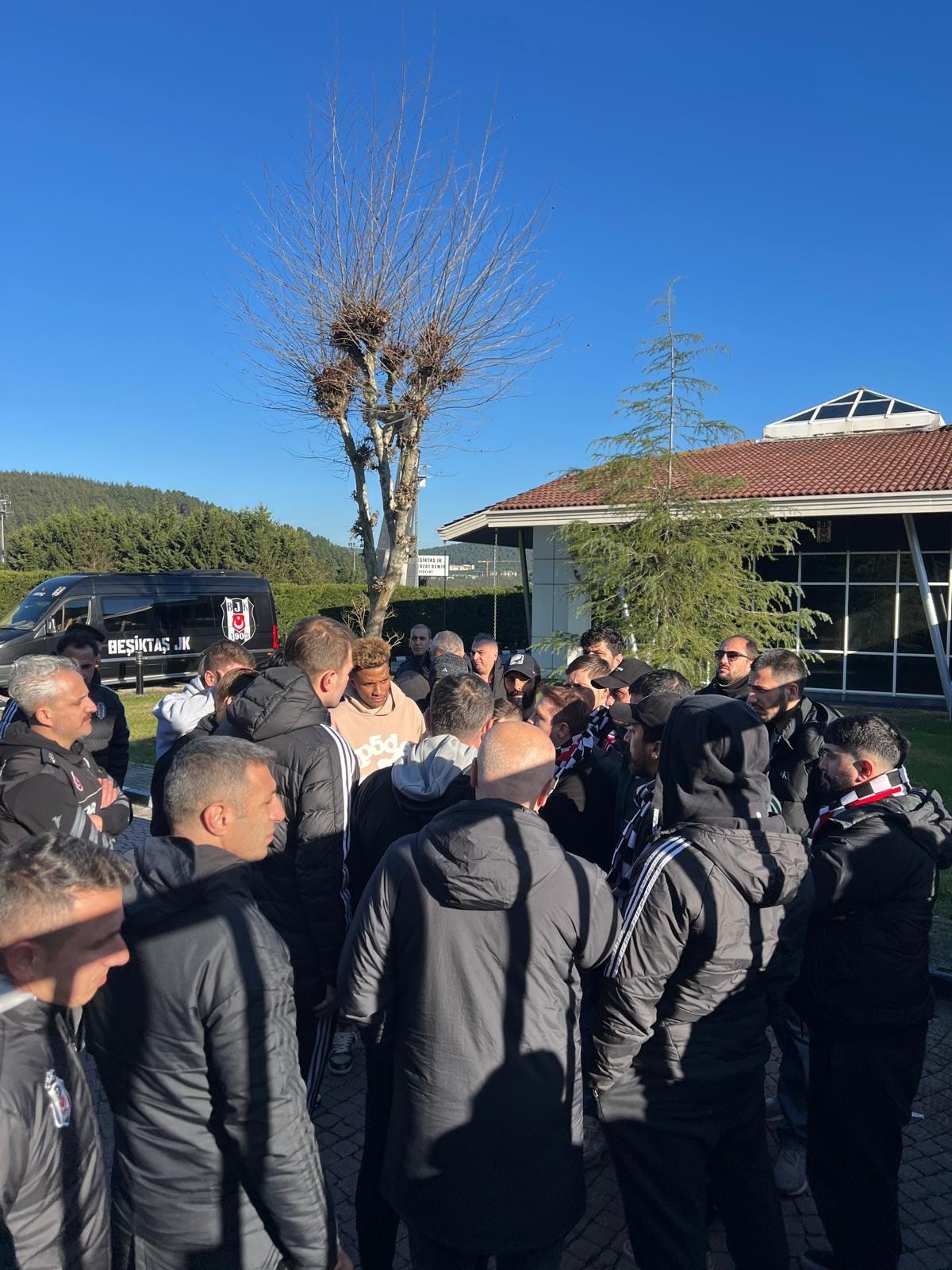Adana dönüşünde tesislere giden Beşiktaş taraftarları, kaptan Necip Uysal, Mert Günok, Jonas Svensson ve Gedson Fernandes ile görüştü.