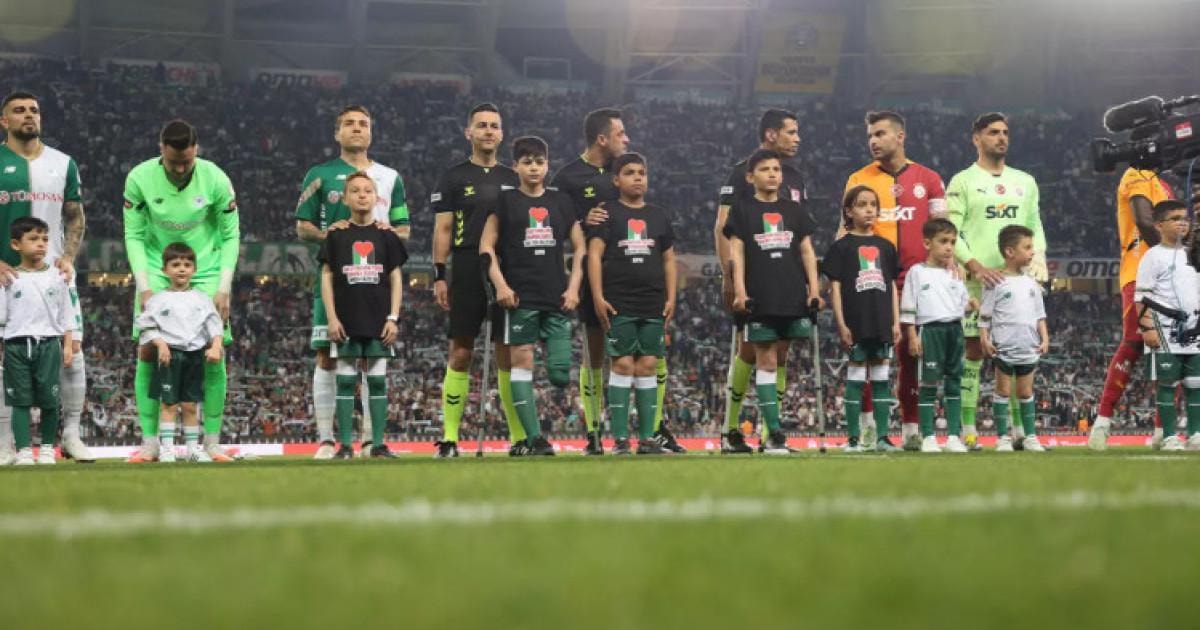 Türkiye Kupası yarı finalinde Konya Büyükşehir Stadı'nda oynanan Konyaspor-Galatasaray karşılaşması öncesi gerçekleştirilen seremoniye İsrail'in Gazze'de düzenlediği saldırılarda sakat kalan çocuklar da katılmıştı. Çocukların tişörtlerinde Filistin'de yaşanan zulme yönelik sarsıcı mesajlar yer almıştı. Konyaspor da sahaya İsrail saldırılarına tepki gösteren bir pankartla çıkmıştı.