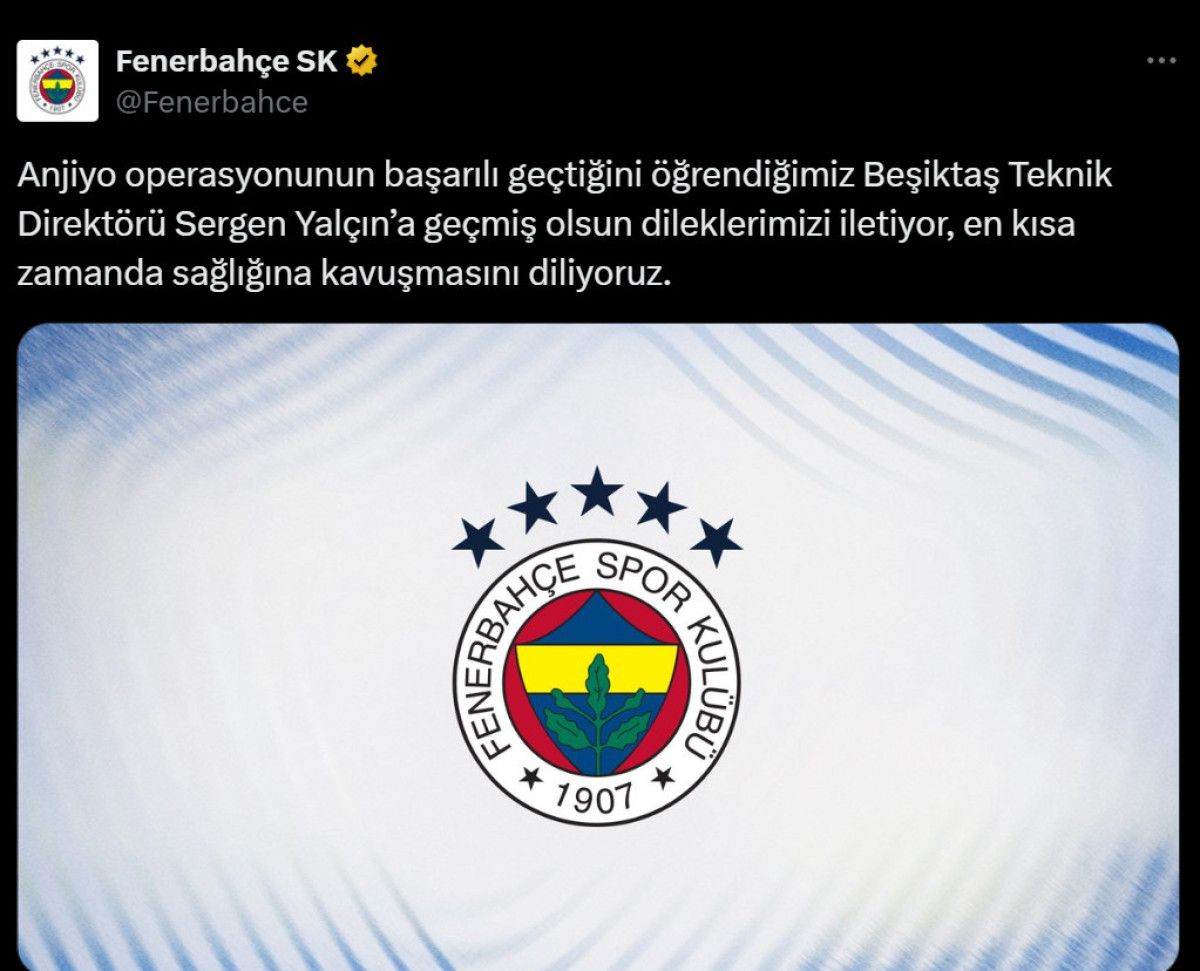 - Türkiye Futbol Federasyonu, Fenerbahçe ve Galatasaray, anjiyo operasyonu geçiren Sergen Yalçın'a geçmiş olsun mesajı yayınladı.