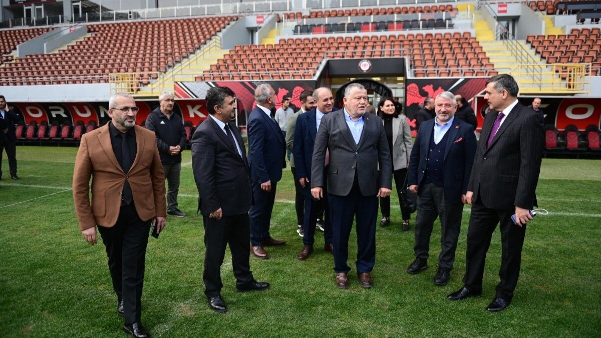 Kurul üyeleri toplantı öncesinde Çorum Şehir Stadyumu’nda incelemelerde bulundu.