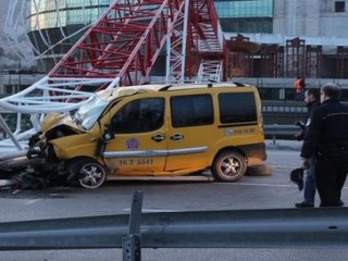 Devasa vincin düştüğü Nilüfer Deresi üzerindeki köprüde seyir halindeki Fatih Demirkıran (28) yönetiminde 16 T 5541 plakalı ticari taksi ezildi.