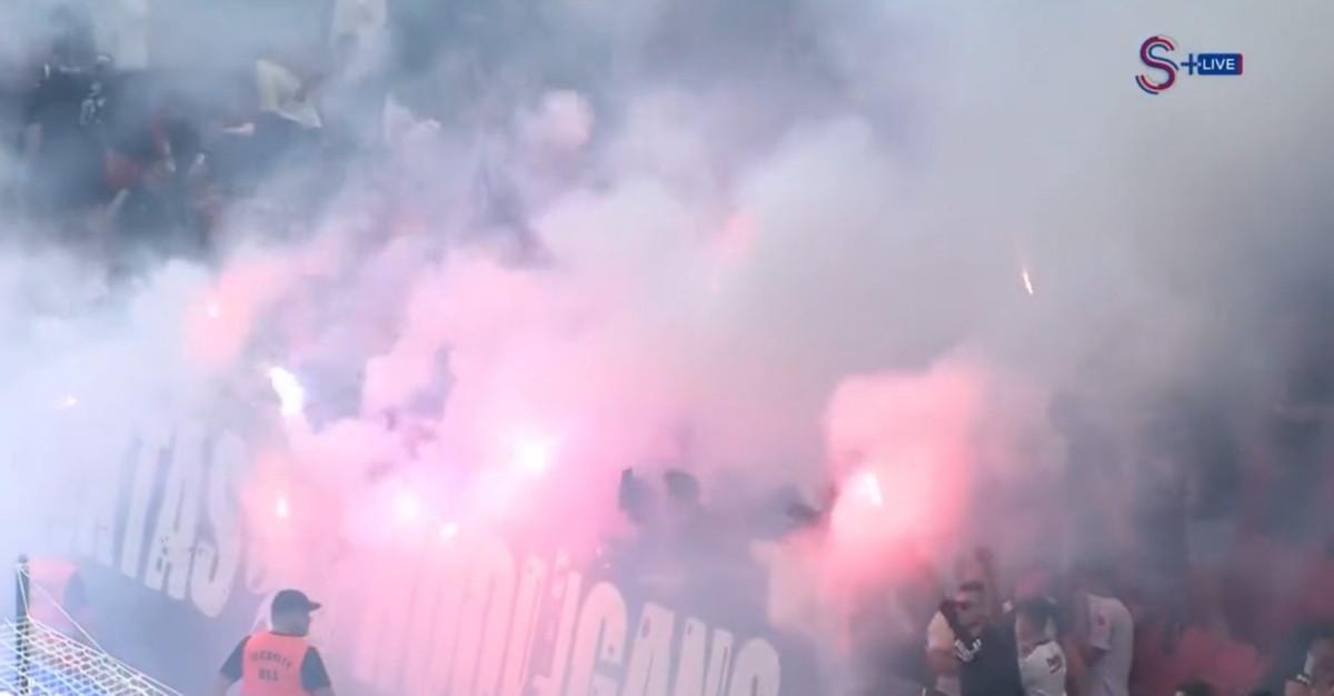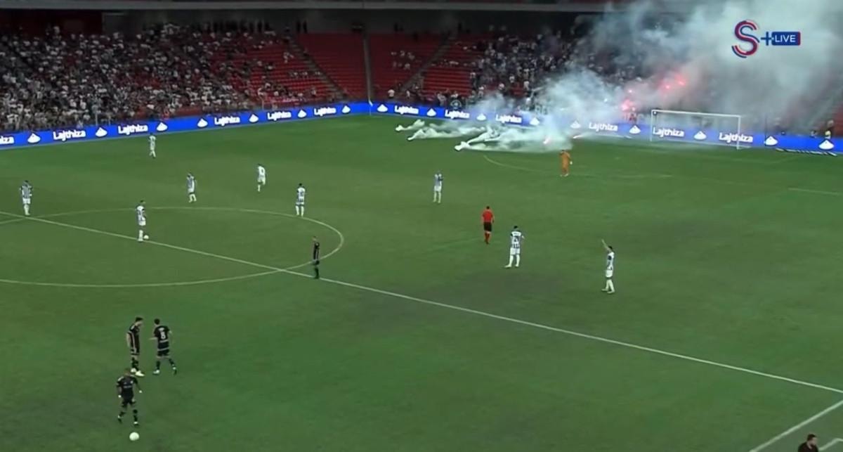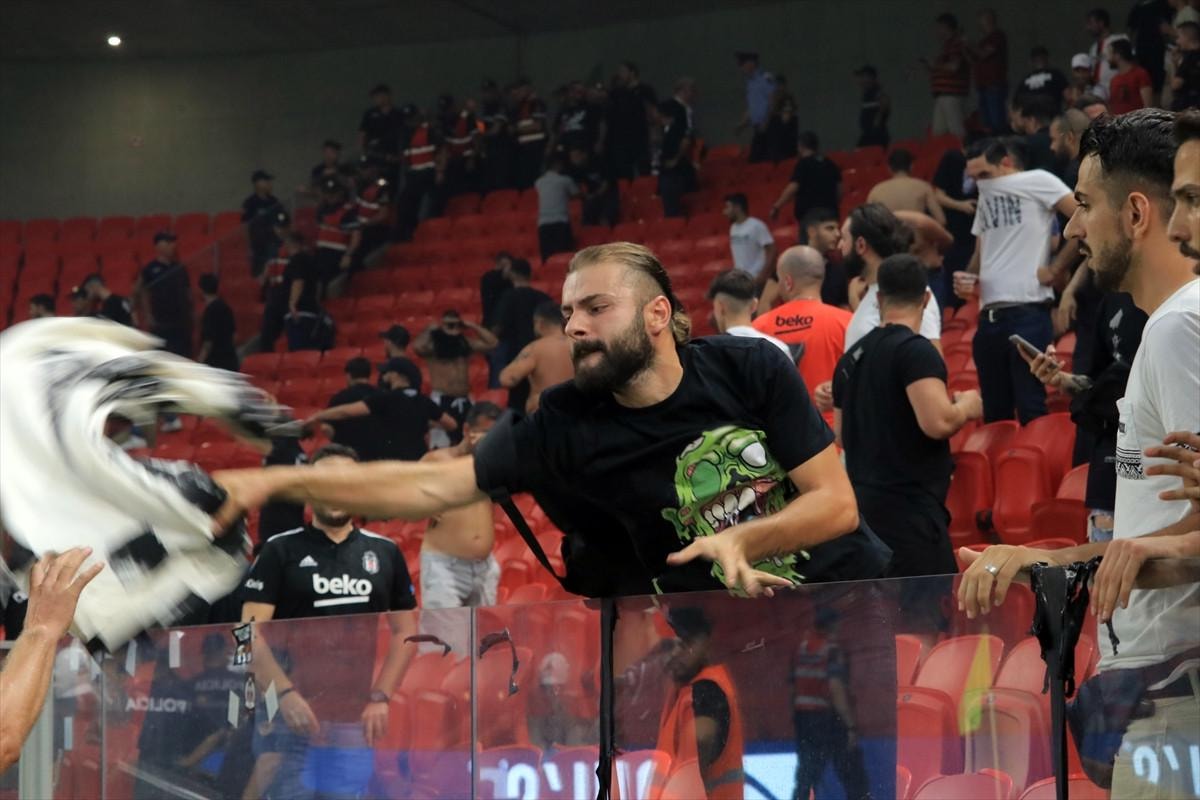 Siyah-beyazlı taraftarların sahaya meşale atmasıyla başlayan olaylarda daha sonra iki takım seyircileri arasında gerginlik yaşandı.