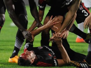 Bursasporlu futbolcu Renato Civelli ile girdiği hava topu mücadelesi sonrası yere düşerken rakibinin tekmesi yüzüne gelen Tomas Sivok kanlar içinde yeşil zeminde kaldı.