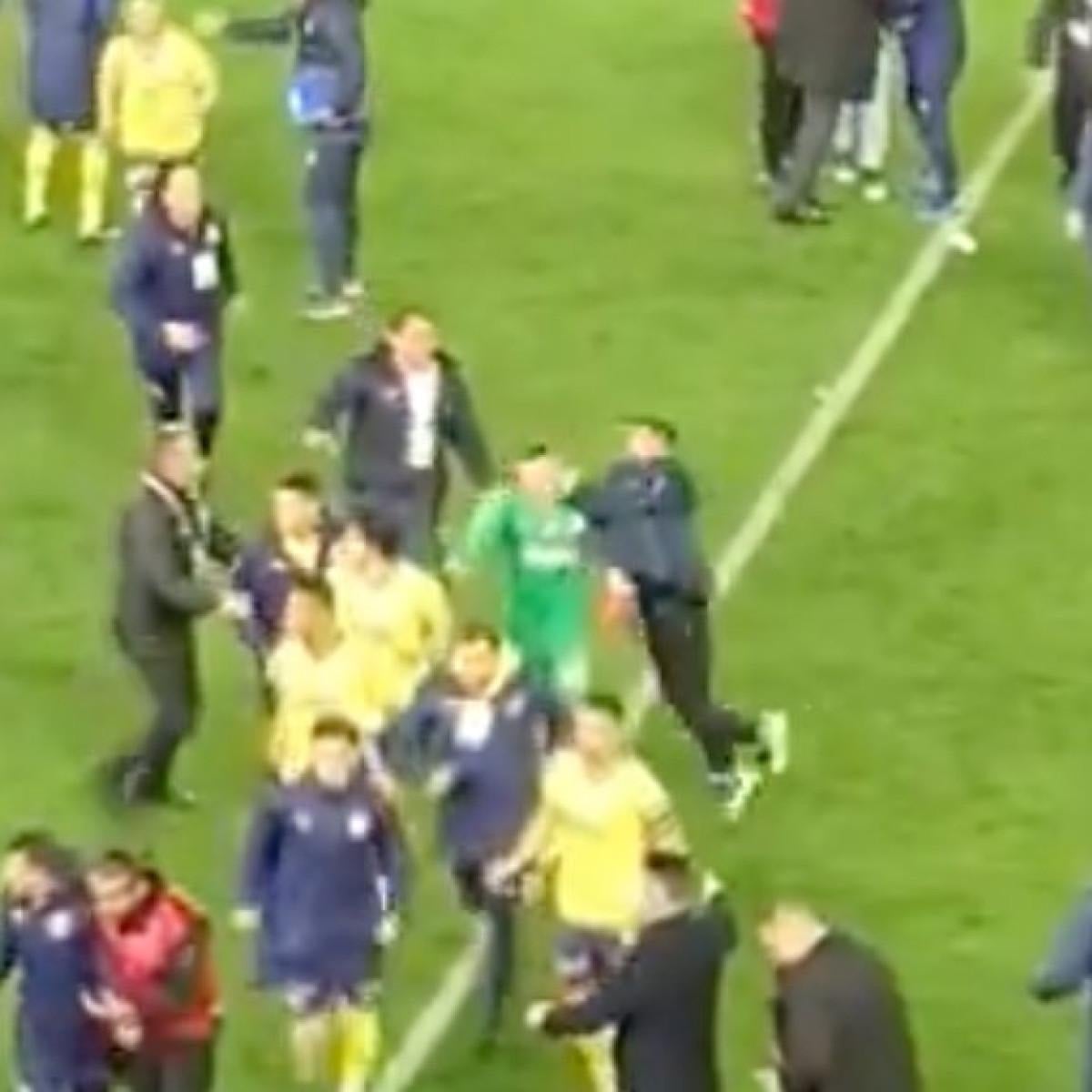 Daha sonra Trabzonsporlu taraftarlarla Fenerbahçeli futbolcular arasında gerginlik yaşanırken, güvenlik güçleri olayları engellemekte zorlandı.