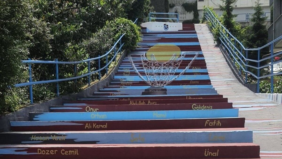 Merdivene camianın önemli profillerinin isimlerinin yazıldığı görülürken, şampiyonluk kupasının da bir motifinin çizilmesi dikkat çekti.