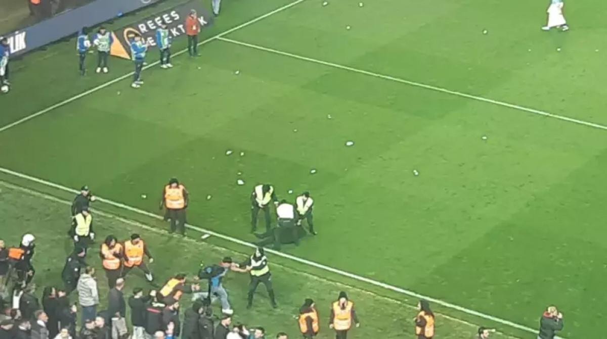 Maç boyunca da sahaya çok sayıda yabancı madde atıldı ve karşılaşma bu yüzden sık sık durdu.