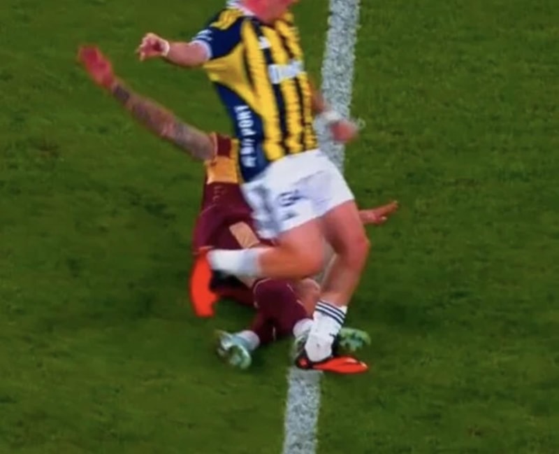Fenerbahçeli futbolcular ve tribünler, bu pozisyonda kırmızı kart itirazında bulundu.