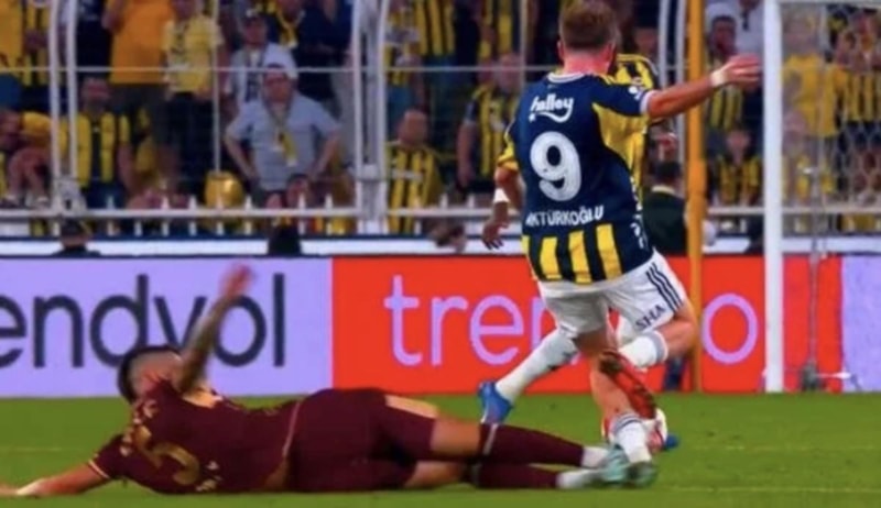 Trabzonspor forması giyen Okay Yokuşlu, Fenerbahçe maçında VAR incelemesinin ardından doğrudan kırmızı kart gördü.