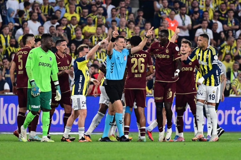 Trabzonspor, Fenerbahçe ile oynadığı maçta VAR incelemesinin ardından 10 kişi kaldı.