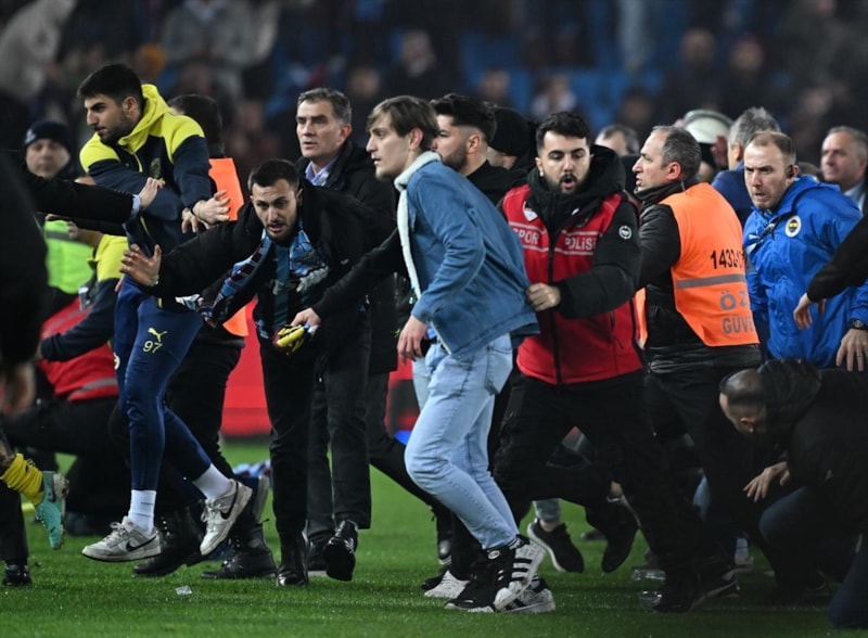 Güvenlik güçlerinin de müdahalesiyle sarı-lacivertli oyuncular, tünelden geçerek soyunma odasına gitti.