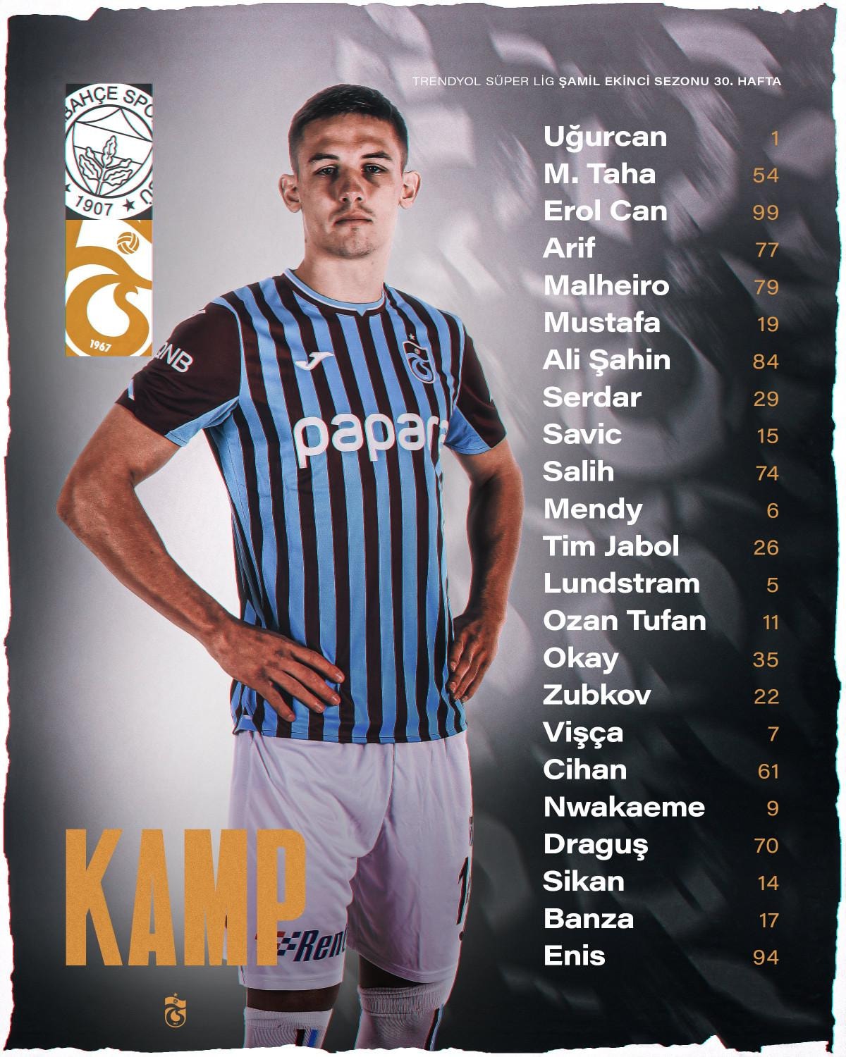 Bu kritik mücadele öncesinde konuk takım Trabzonspor'un kamp kadrosu belli oldu.