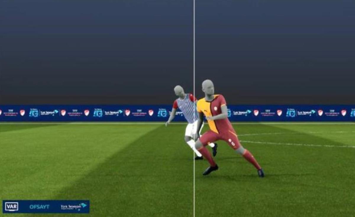 Hakem Karaoğlan, VAR'dan gelen uyarının ardından pozisyonu ekranda izledi ve pozisyon başlangıcında ofsayt olduğunu işaret etti.