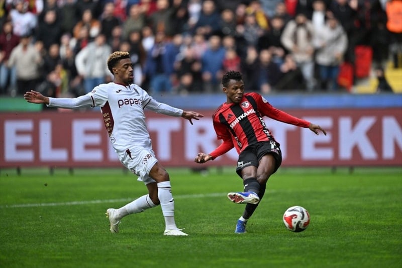 62' Gaziantep FK, sağ kanattan tehlikeli bir atak geliştirdi. Tayyip Talha'nın sürüklediği ve içeri aktardığı topta Bayo'nun vuruşunda Onana topu kornere çeldi.