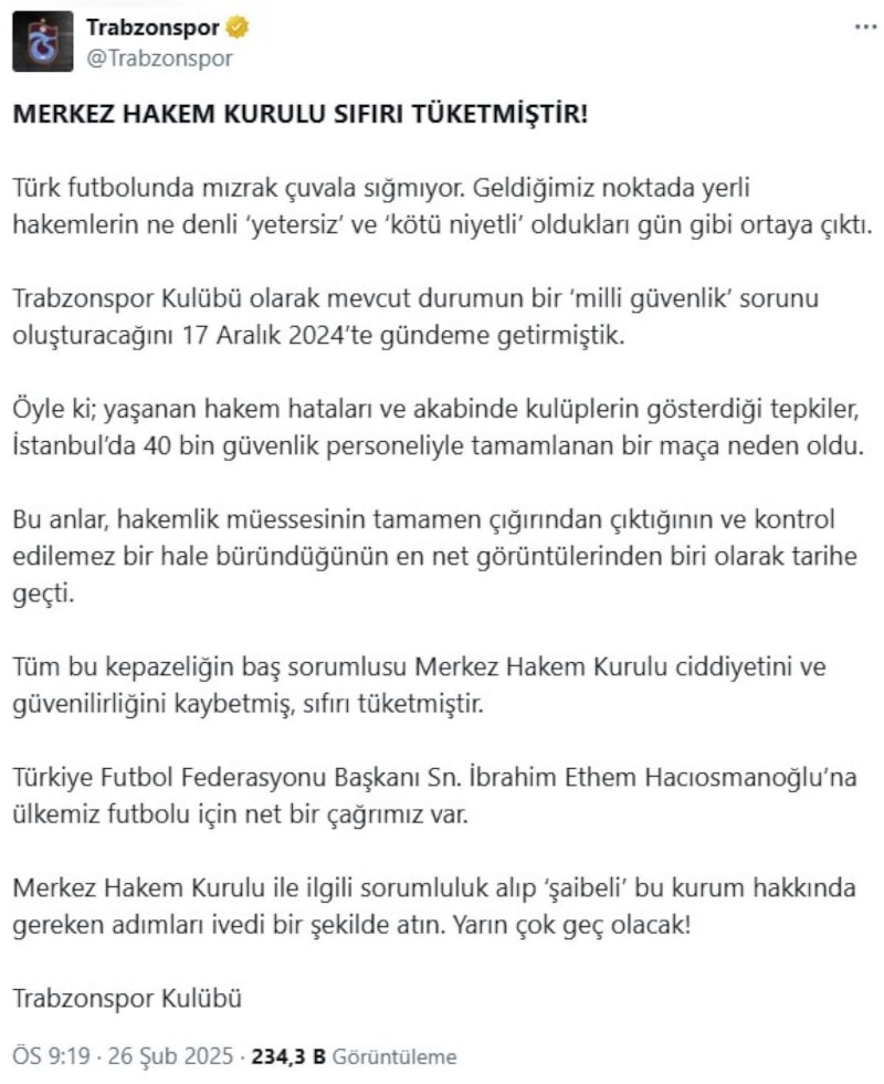 Merkez Hakem Kurulu ile ilgili sorumluluk alıp ‘şaibeli’ bu kurum hakkında gereken adımları ivedi bir şekilde atın. Yarın çok geç olacak!