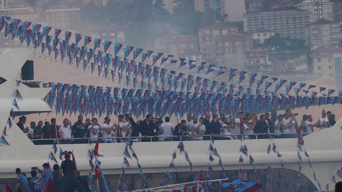 Bordo-mavililer ilk olarak Mehmet Ali Yılmaz Tesisleri'nden saat 17.00'de deniz yoluyla 'şampiyonlar filosu' oluşturarak Trabzon Limanı'na vardı.