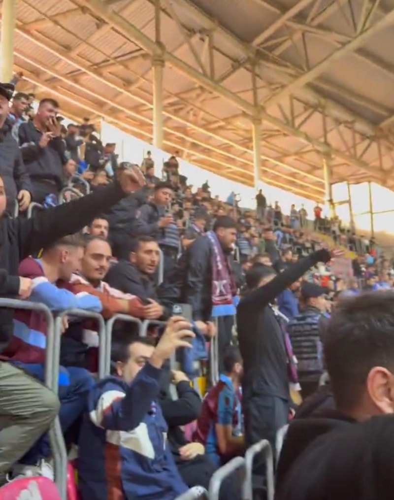 Galatasaray maçı için deplasman tribünündeki yerini alan Trabzonsporlu taraftarlar, Uğurcan Çakır'a tepki gösterdi.